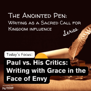Paul’s life reminds us that the anointed pen is not reactive but redemptive. Envy may shadow your calling, but your writing can be a vessel of grace that points beyond human rivalry to divine purpose. When faced with envy-driven critique, let your words rise above, seasoned with grace, anchored in truth, and committed to Kingdom influence.